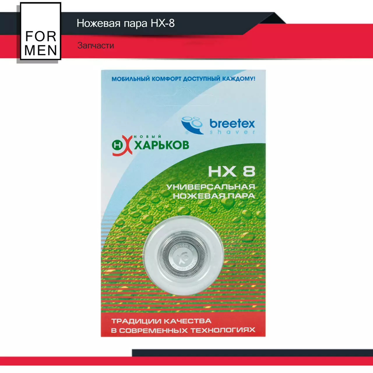 Ножова пара НХ 8 для електробритв ТМ Новий Харків, являє собою готовий до встановлення в електробритву комплект нерухомого та рухомого ножів, ретельно притертих один до одного.